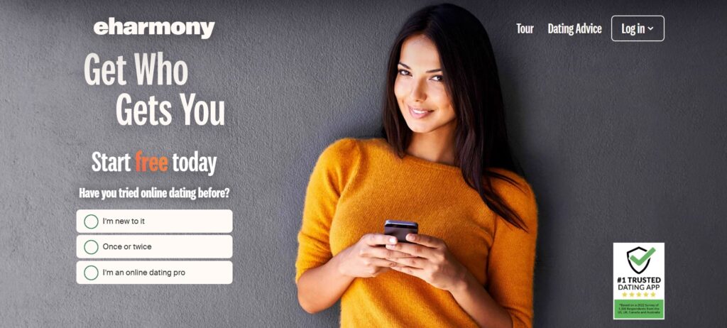 For those looking for something serious, eHarmony is a great option. It’s known for its commitment-minded user base. It means that people aren’t just here to waste time; they’re looking for love.