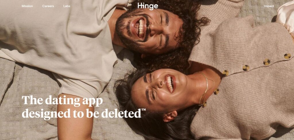 Also, it’s important to mention that most users on Hinge are serious about finding a committed relationship, not another one-night stand. It aligns perfectly with Hinge’s brand’s goal: ‘Designed to be deleted.’